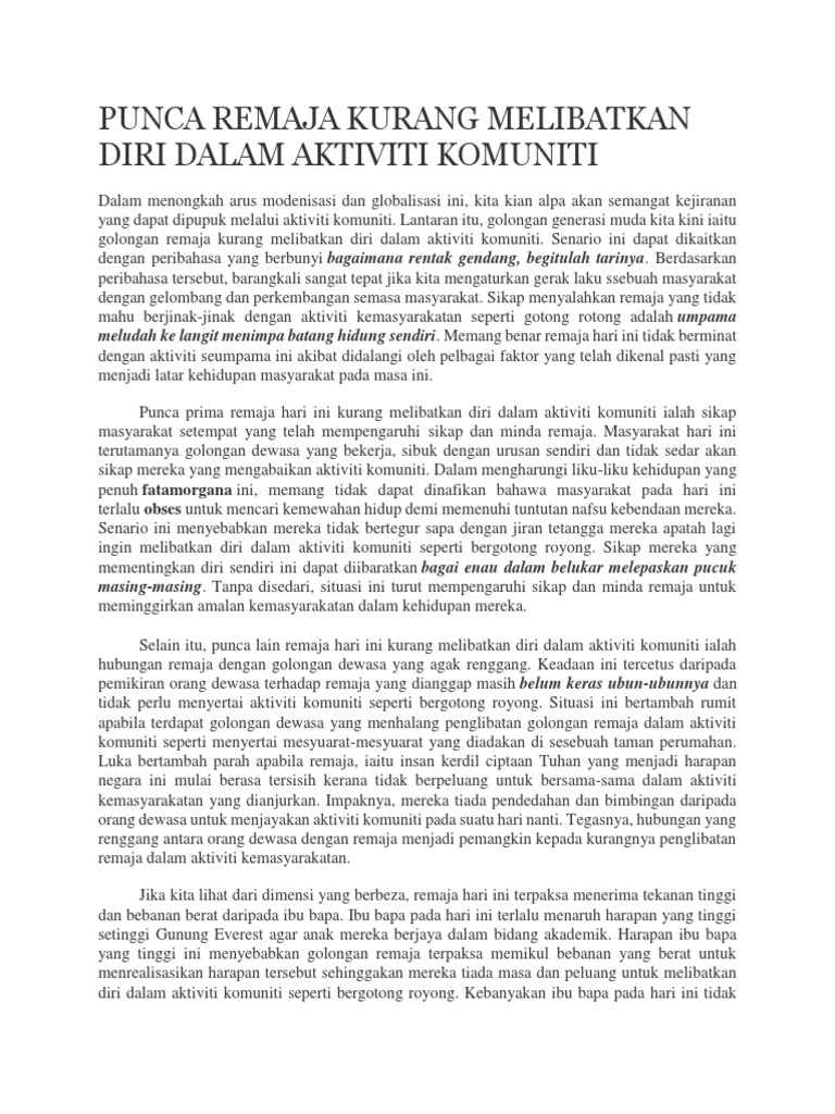 Punca Remaja Kurang Melibatkan Diri Dalam Aktiviti Komuniti Pdf